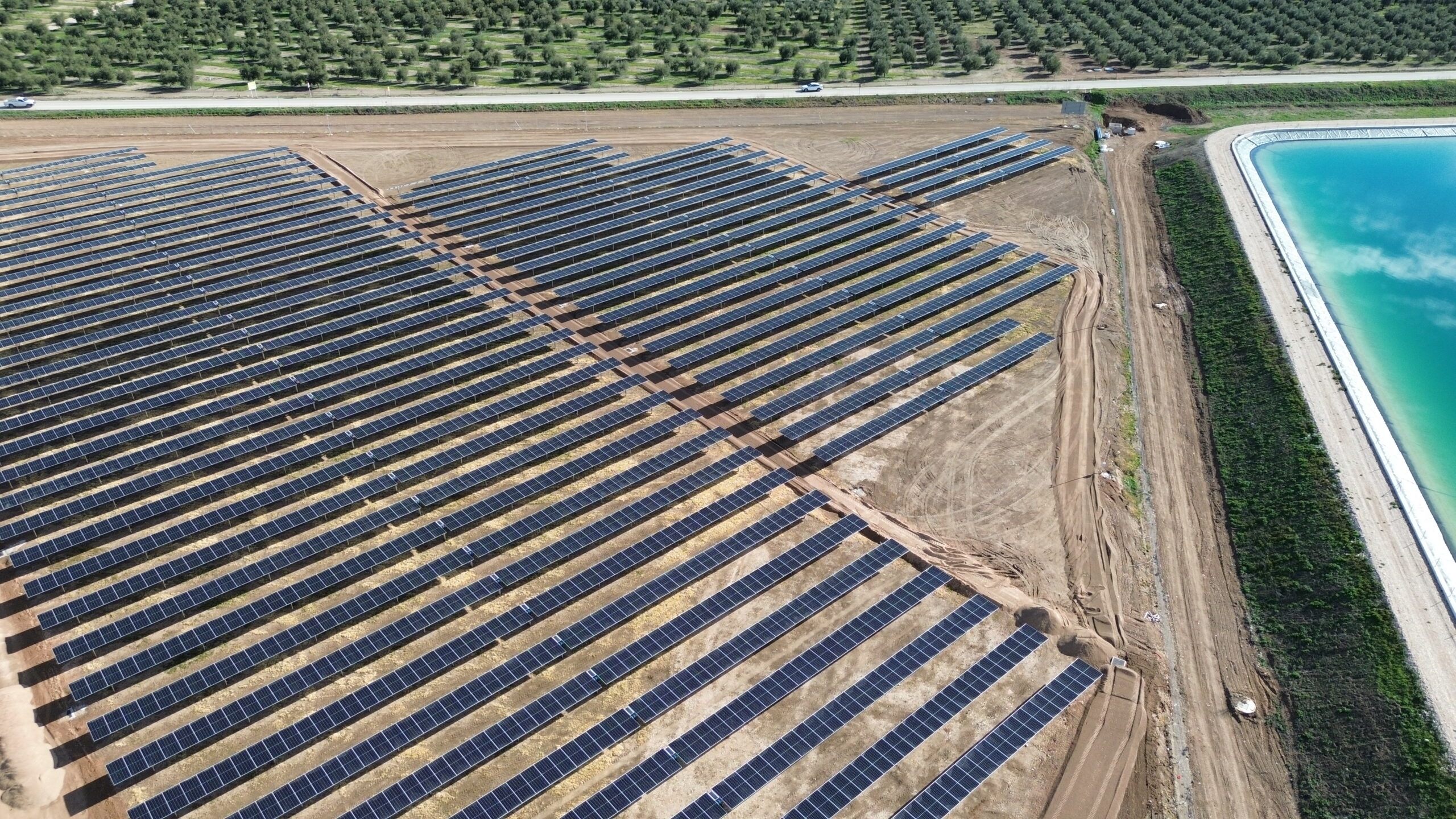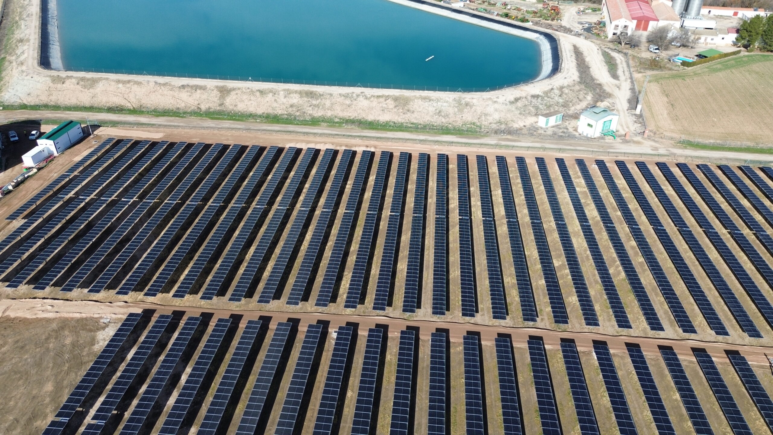 Alimentación con energía fotovoltaica del grupo de bombeo y filtrado con una potencia total instalada de 895 Kw, con una planta solar fotovoltaica de 1,74 Mwp TOTALMENTE AISLADA CON SEGUIDORES Y BATERÍAS DE RESPALDO.